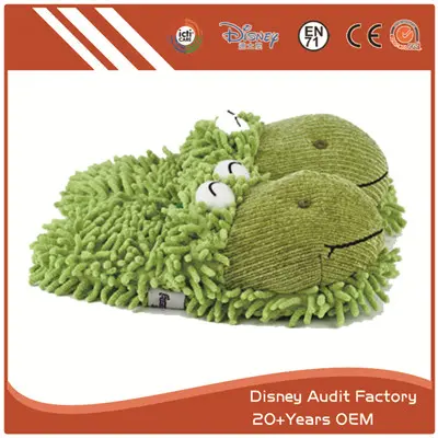 Fuzzy Frog Slippers Manufacturer in China Provides Fuzzy Frog Slippers, Custom Color, 20CM to 25CM, Fabric Pattern Printing, Super Comfortable Fabric.