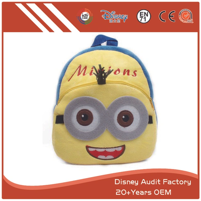 Plush Minions Backpack Manufacturer in China Supplies Plush Minions Backpack for Children, 100% PP Cotton, 45CM, Embroidery, Printing Pattern, OEM.