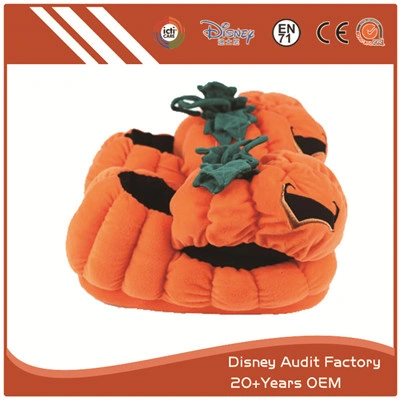 Cute House Slippers Manufacturer in China Supplies Pumpkin Slippers, Made of Soft Plush Material, Embroidery Designs, Orange, Can Be Customized.